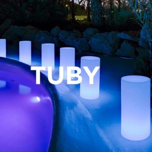 Iluminaria cilíndrica em polietileno branco de média densidade, com acabamento rugoso, utilização interior ou exterior. Iluminação por alimentação eléctrica e…