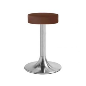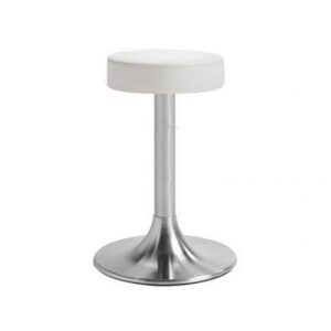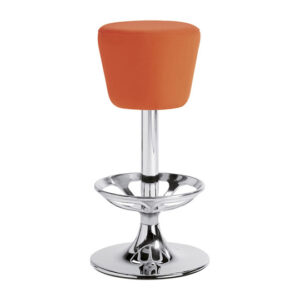 Banco de bar com estrutura de pé central em tubo de aço cromado, assento giratório de altura fixa nas cores…